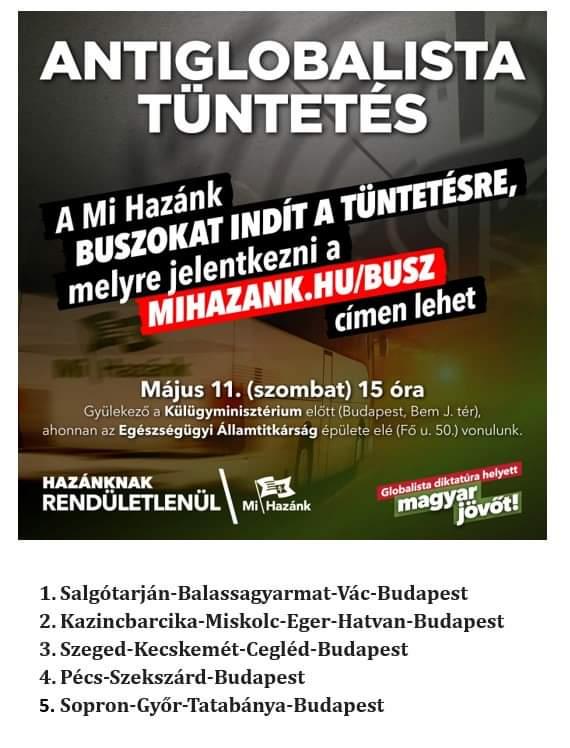 Ingyenes buszokat indítunk az ország több részéről a sorsdöntő antiglobalista tüntetésre, ahol a WHO-szerződés és a vendégmunkások ellen is tüntetünk!