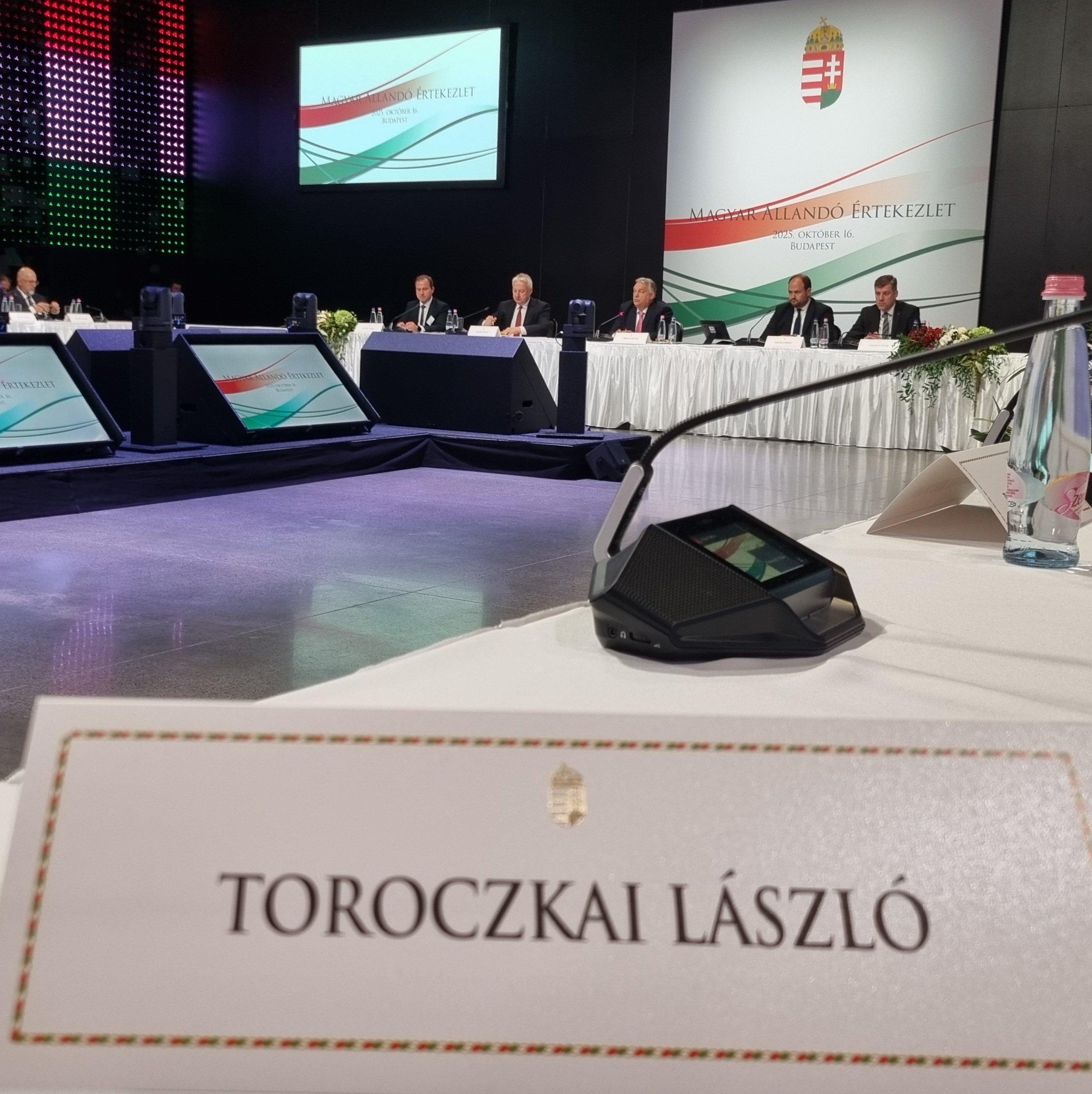 Éppen Orbán Viktor miniszterelnököt hallgatjuk a Magyar Állandó Értekezlet 23. ülésén, ahol a kárpát-medencei (határon inneni és túli) parlamenti pártok vezetői tanácskoznak évente egyszer a nemzetpolitikáról.