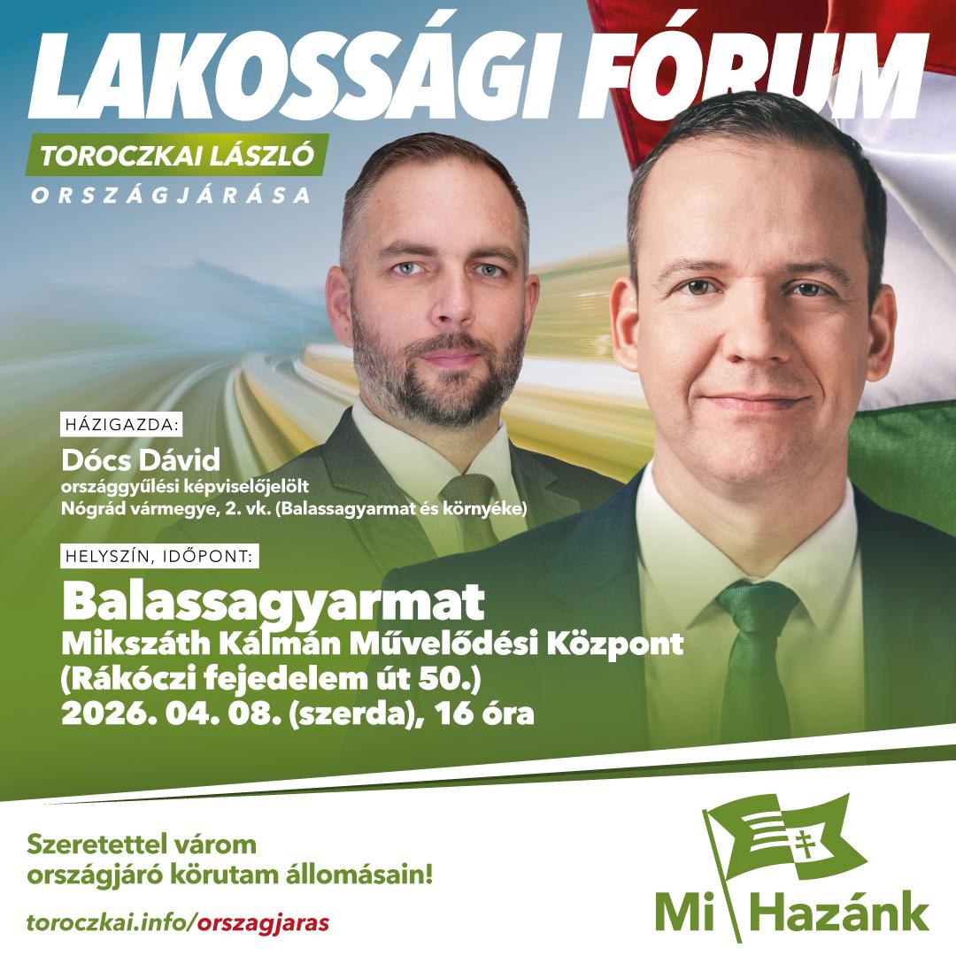 Minden érdeklődőt szeretettel várunk lakossági fórumunkra, ahol a résztvevők számára ismertetjük a Mi Hazánk programját Magyarország felvirágoztatására.