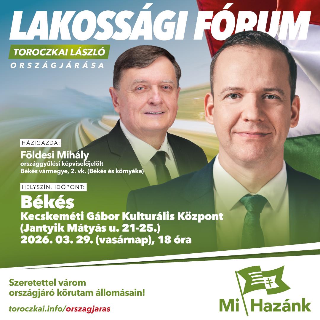 Minden érdeklődőt szeretettel várunk lakossági fórumunkra, ahol a résztvevők számára ismertetjük a Mi Hazánk programját Magyarország felvirágoztatására.
