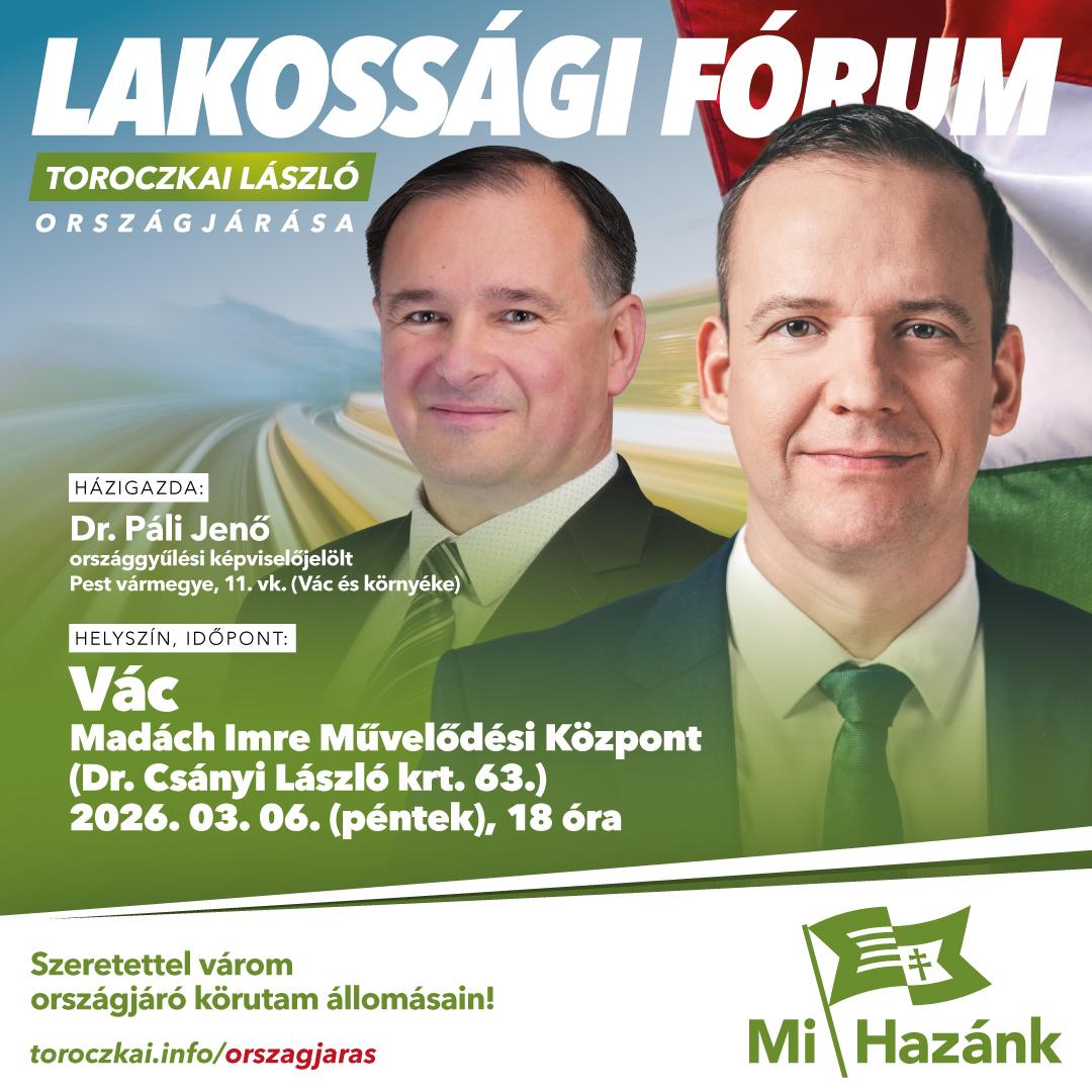 Minden érdeklődőt szeretettel várunk lakossági fórumunkra, ahol a résztvevők számára ismertetjük a Mi Hazánk programját Magyarország felvirágoztatására.