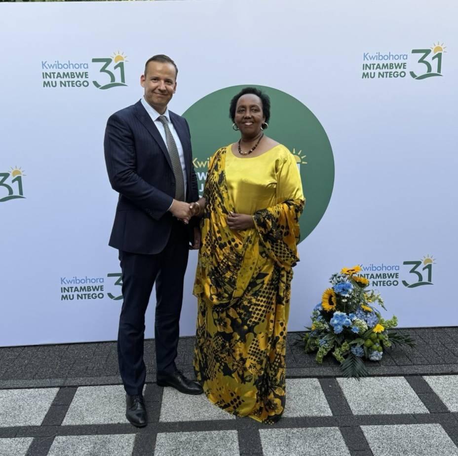 Ruanda nagykövet asszonyával, Őexc. Margueritte Françoise Nyagahurával. Ezzel a csodálatos országgal, amelyet sok szempontból Afrika Svájcának is neveznek, remek megállapodásokat köthetünk. A gazdasági lehetőségek mellett, Ruanda az az afrikai ország, amely Európából kitoloncolt illegális migránsokat is befogadna, de - ahogy arra a szolnoki tüntetésen is utaltam - a bérrabtartásról is tárgyalhatnánk.